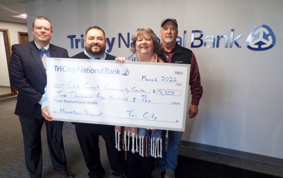 Tri City National Bank recently donated $2,500 to the Oak Creek Community Center, which is an independent, self-funded nonprofit. “The Oak Creek Community Center serves as an event venue, meeting place for social programs, and public gathering space for families and organizations within the city and surrounding Oak Creek communities,” said Adan Cintron, Assistant Vice President of In-Store Banking at Tri City and an Oak Creek Community Center Board Member.